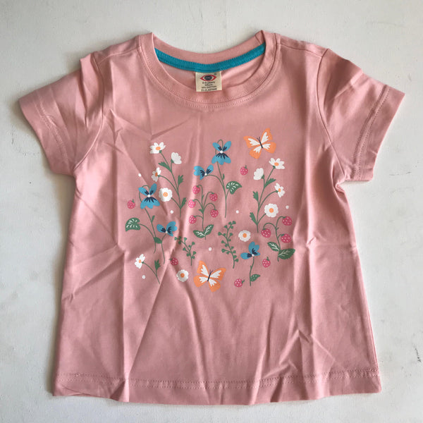 Girls Cotton Pink T-Shirt - Butterfly Garden