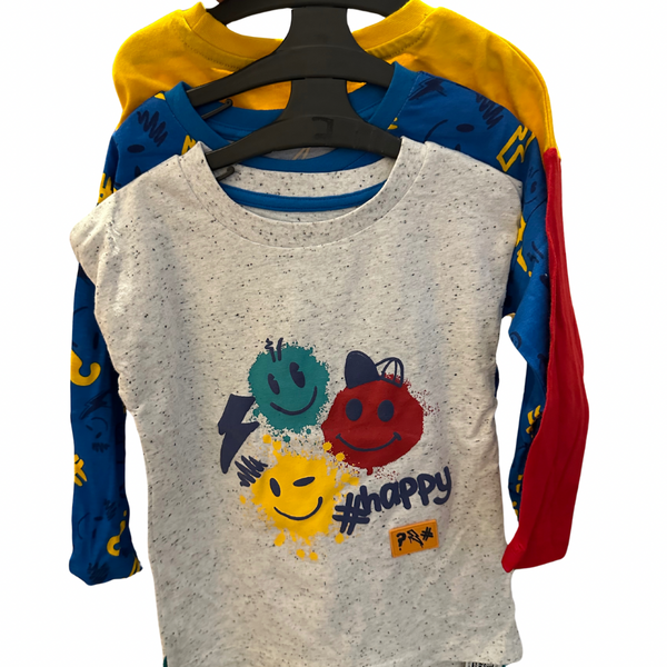 Long Sleeve Boys T-Shirt 3 Pack - Smile Theme