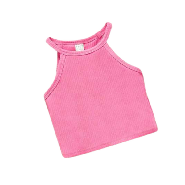 Girls Pink Ribbed Cutout Sleeve Tank Top
