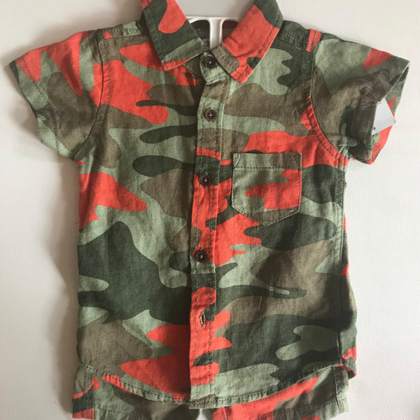 Boys Short Sleeve Cotton Shirt - Blue with Pink Pocket