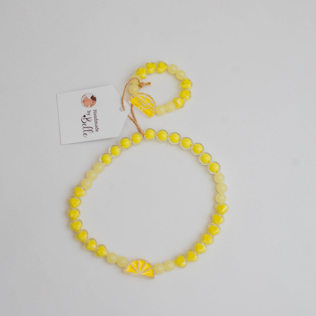 Elevate your style with the Lemon Necklace & Bracelet set, a fresh and vibrant accessory duo designed to brighten any outfit. Perfectly paired, these pieces add a touch of zest and elegance, making them ideal for both everyday wear and special occasions. Embrace a lively look that captures attention effortlessly.