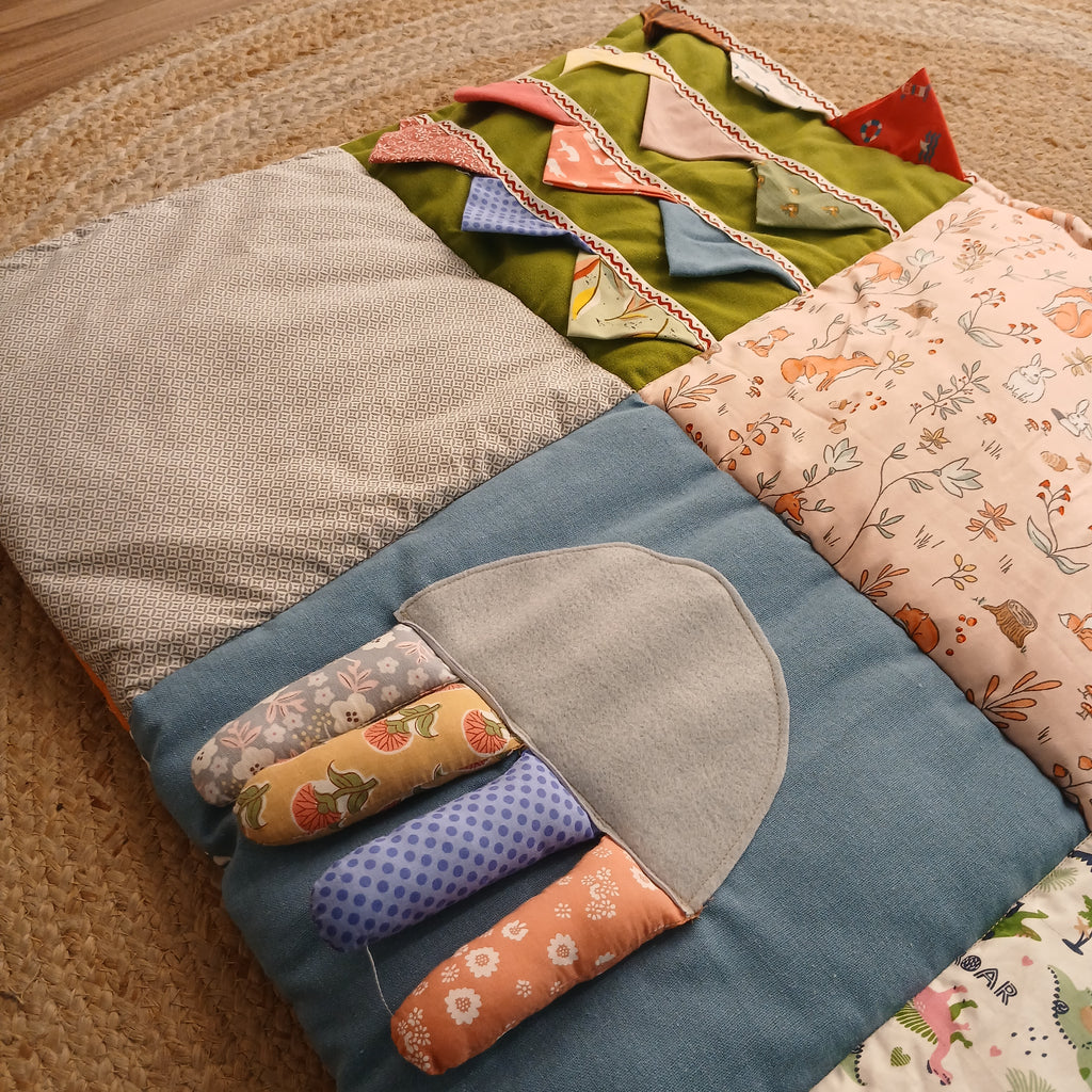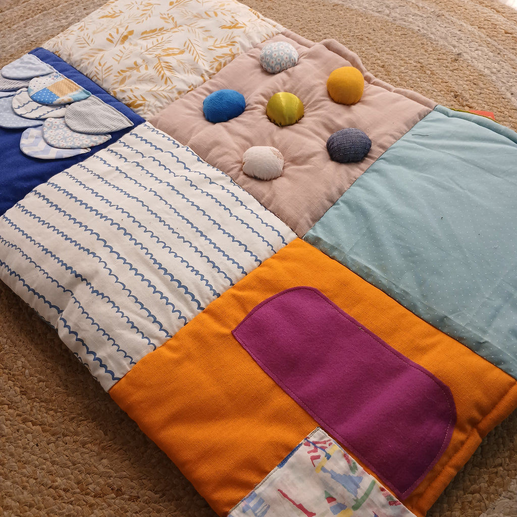Introducing Handcrafted play mat - the perfect safe and educational playtime accessory for kids. 100% handmade with quality materials, this play mat promotes creativity and learning in a safe environment. Inspire your child's imagination with the play mat.