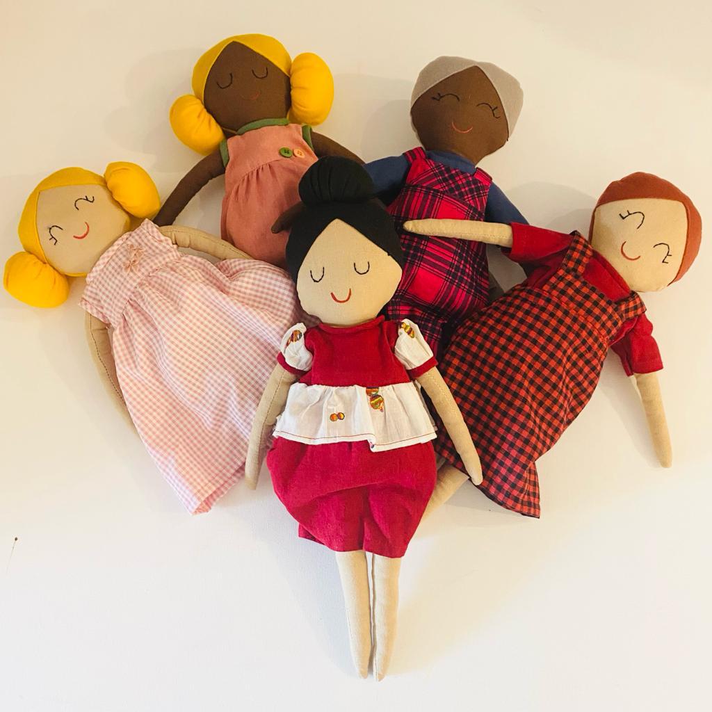 This adorable handmade rag doll is the perfect addition to any child's toy collection. With its cute design and soft fabric, it will bring joy and comfort to any little one. Handmade with love, this doll is a unique and special companion for playtime or cuddles.