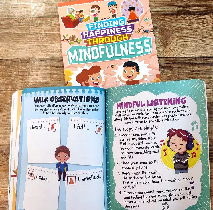 Mindfulness is the basic human ability to be fully present, and aware of where one is and what one is doing. It is a great tool to be more relaxed and improve one’s overall quality of life. ‘Finding Happiness Through Mindfulness’ book comes with fun and unique activities to encourage kids to bring mindful awareness to what is important to them.