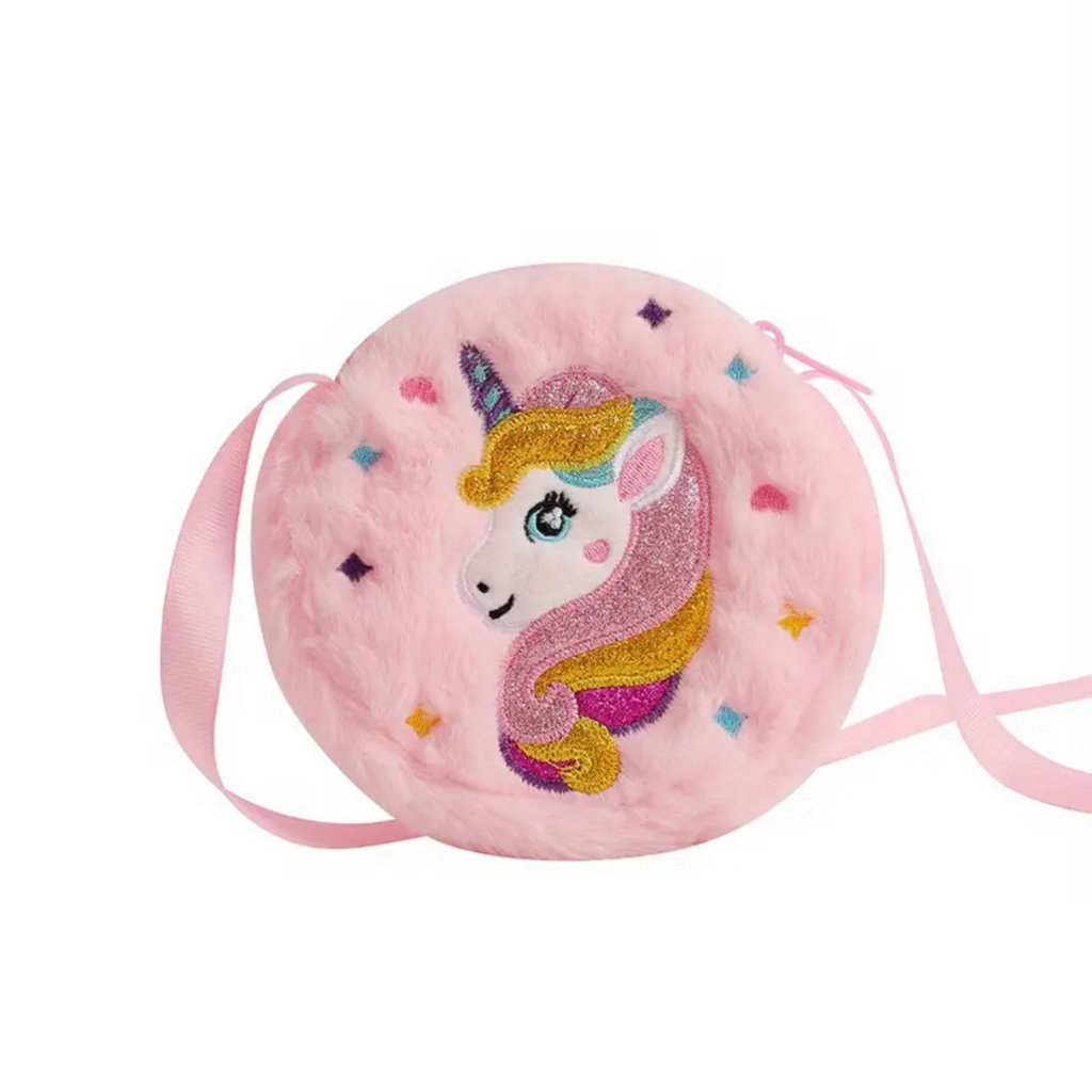 Unicorn Embroidered Plush Cross Body Bag - Pink