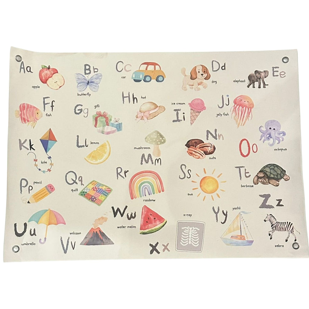 Master foundational literacy skills with this hand-painted English Alphabet Banner on premium canvas paper. Each letter is thoughtfully illustrated with artistic precision, creating an engaging visual reference for early readers and learners. The durable canvas construction withstands classroom environments while maintaining vibrant, handcrafted aesthetics. Perfect for supporting phonics instruction, letter recognition, and alphabet sequencing, this banner serves as both an educational tool and decorative accent that encourages language development in young learners.