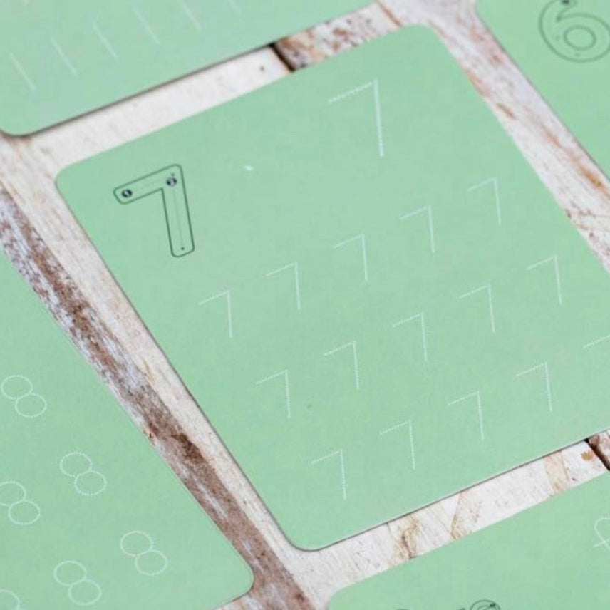 Each number card is double-sided with the number on one side and it’s corresponding word on the back.