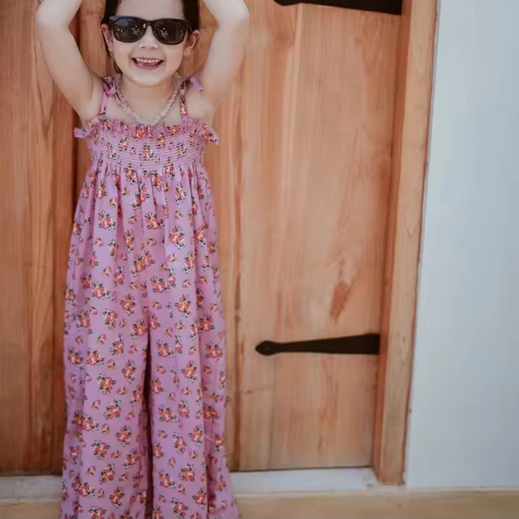 Enhance your little girl's closet with the Girls Jump Suit featuring in a lovely pink shade decorated with charming floral prints.