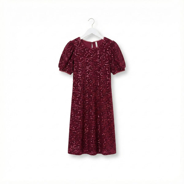 Pink & Red Checked Puff Sleeve Dress for Girls