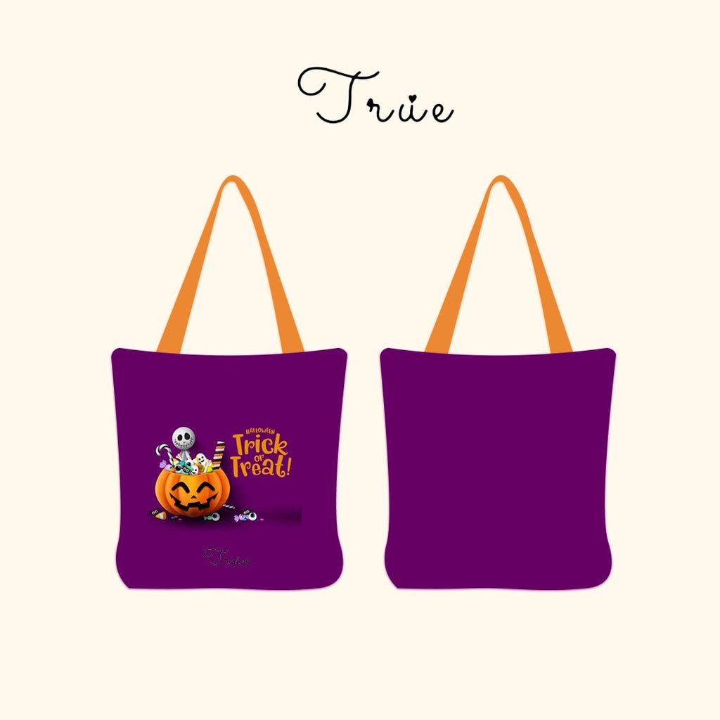 Halloween Trick or Treats Tote Goody Bag - Spooky Pumpkin in Purple