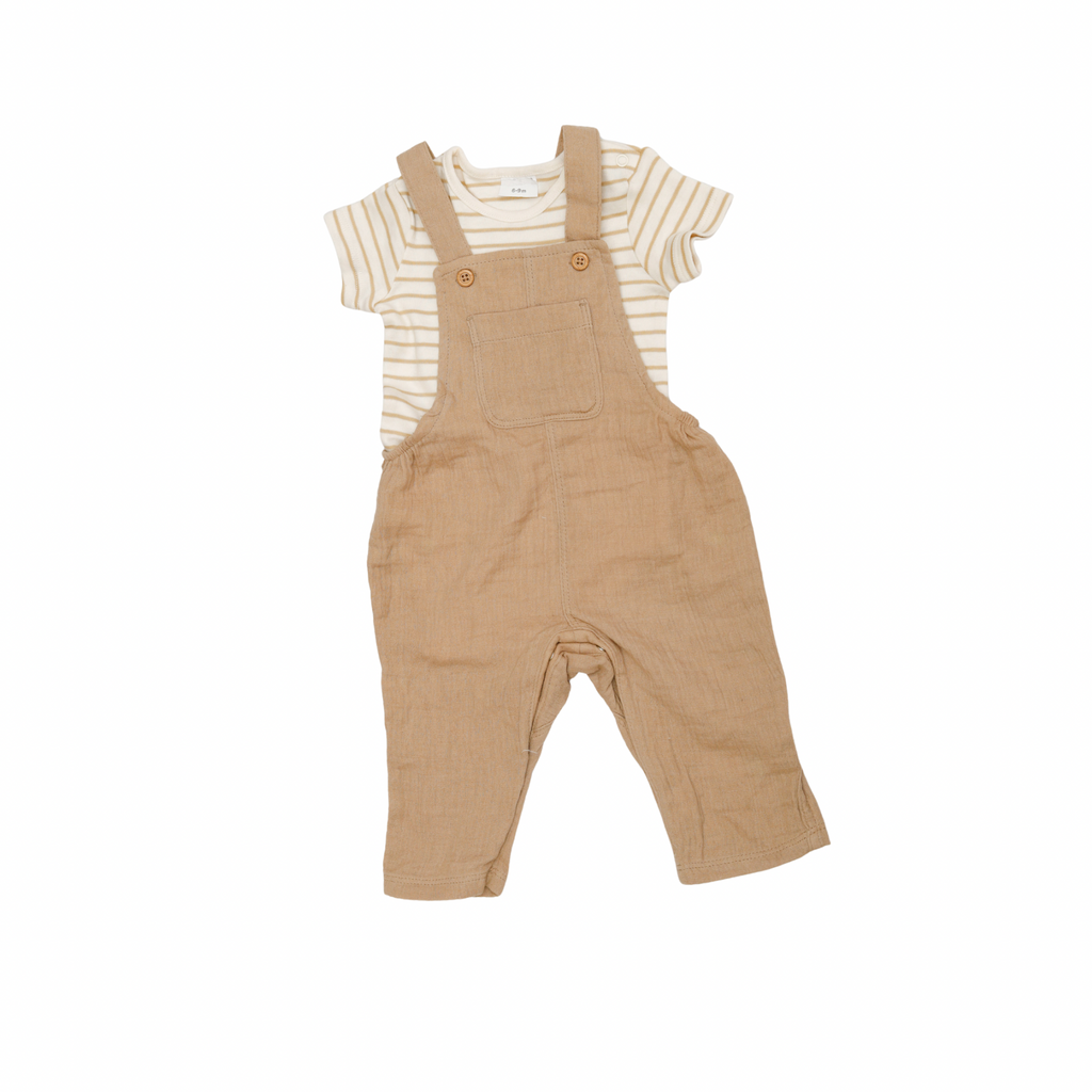 Dress your little one in cozy style with this baby dungaree set. Soft and comfortable, it ensures all-day ease while adding a playful touch to their wardrobe.