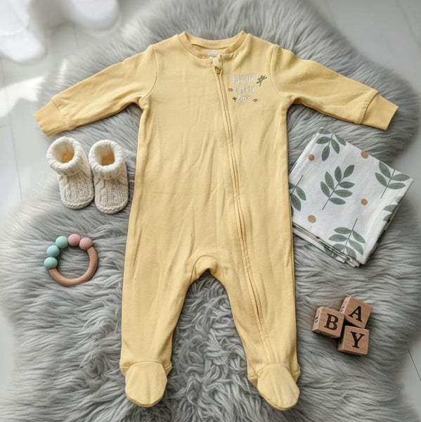 Baby Cotton Zippered Sleepsuit - Mustard color.