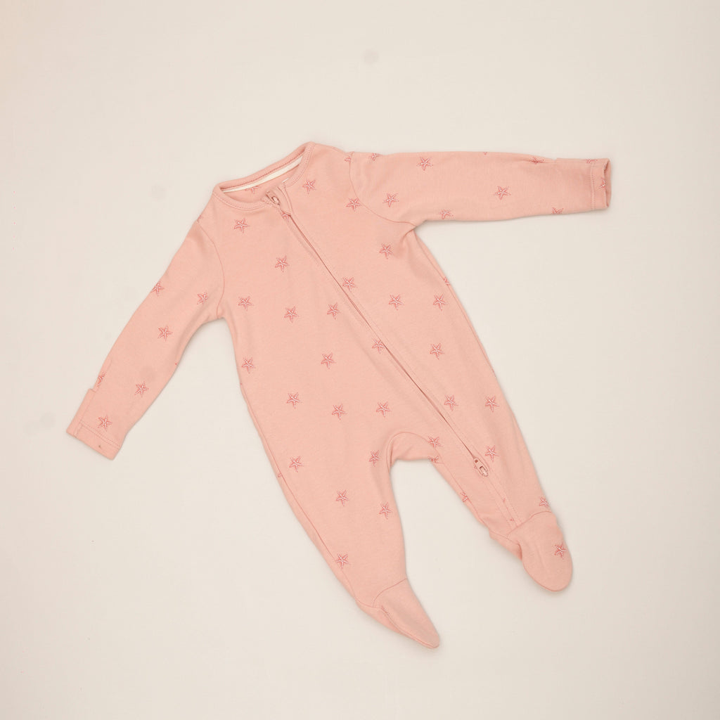 Baby Cotton Zippered Sleepsuit - pink starfish