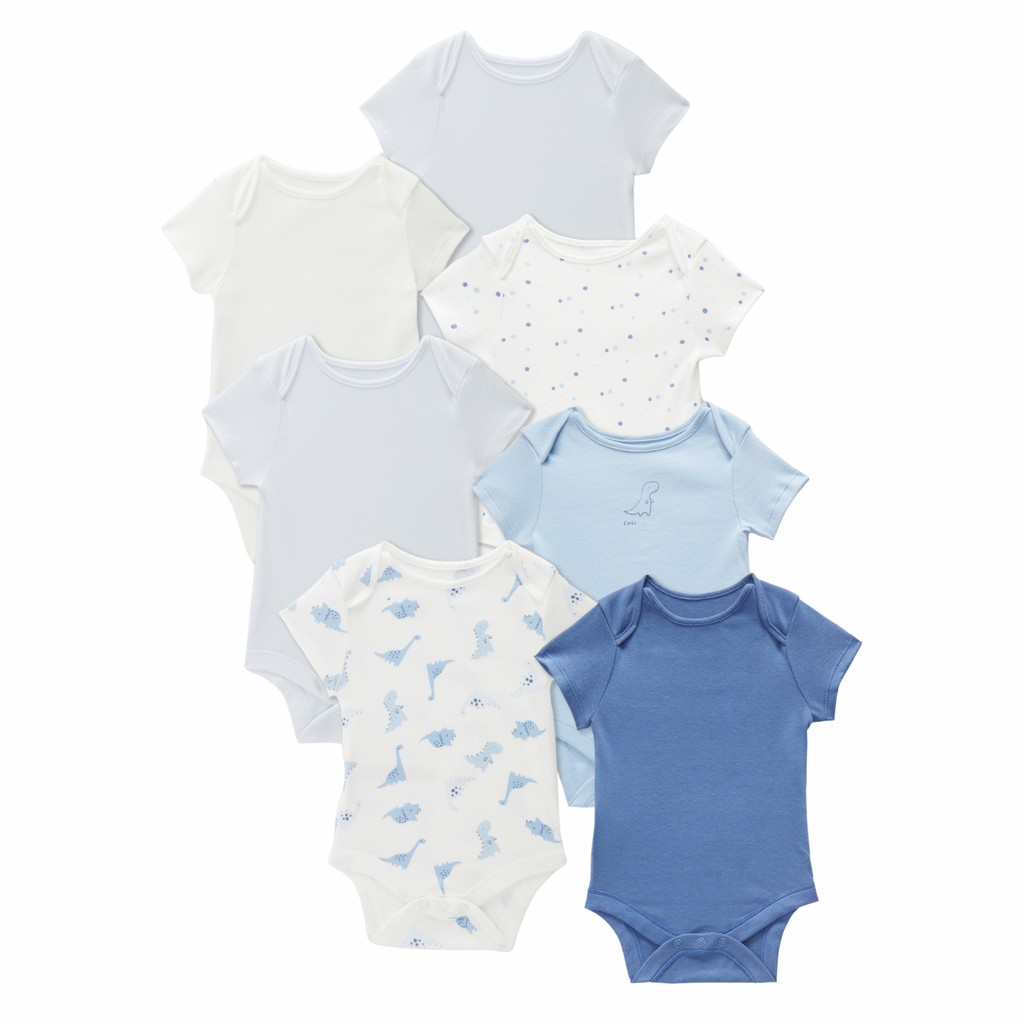 Baby Cotton Short Sleeve Bodysuit - 7 Pack Random Designs (Blue Theme)