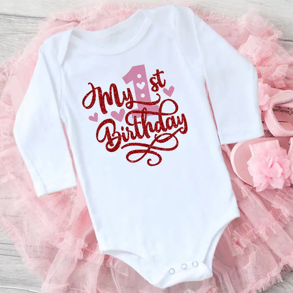 Infant Baby My First Birthday Long Sleeve Bodysuit - Pink Hearts
