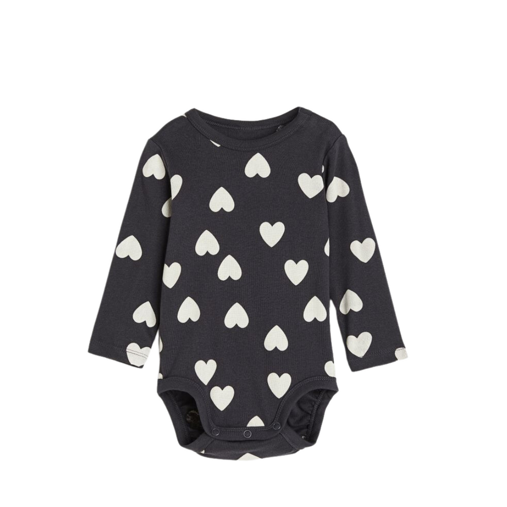Infant Long-sleeved Bodysuit - Grey & White Hearts