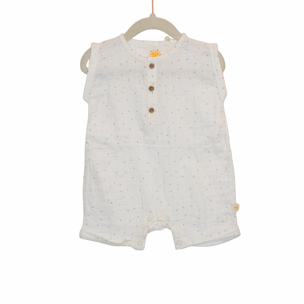 This Kids Muslin Bodysuit made from soft and breathable muslin material is perfect for your little one's delicate skin. With the adorable blue star design, your child will look stylish and feel comfortable all day long. The lightweight fabric also provides natural temperature control, making it ideal for any season.
