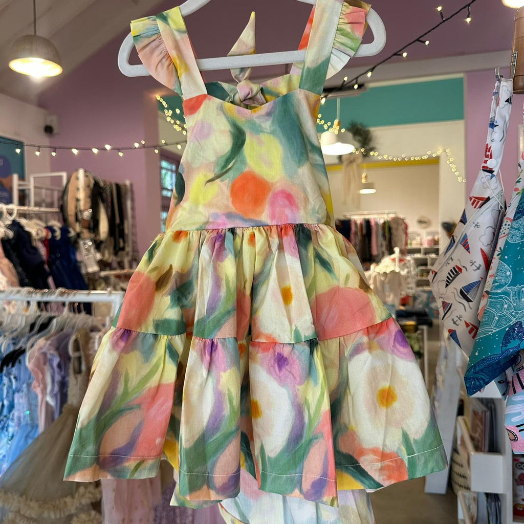 Baby Girl Flutter Sleeve Cotton Abstract Floral Dress