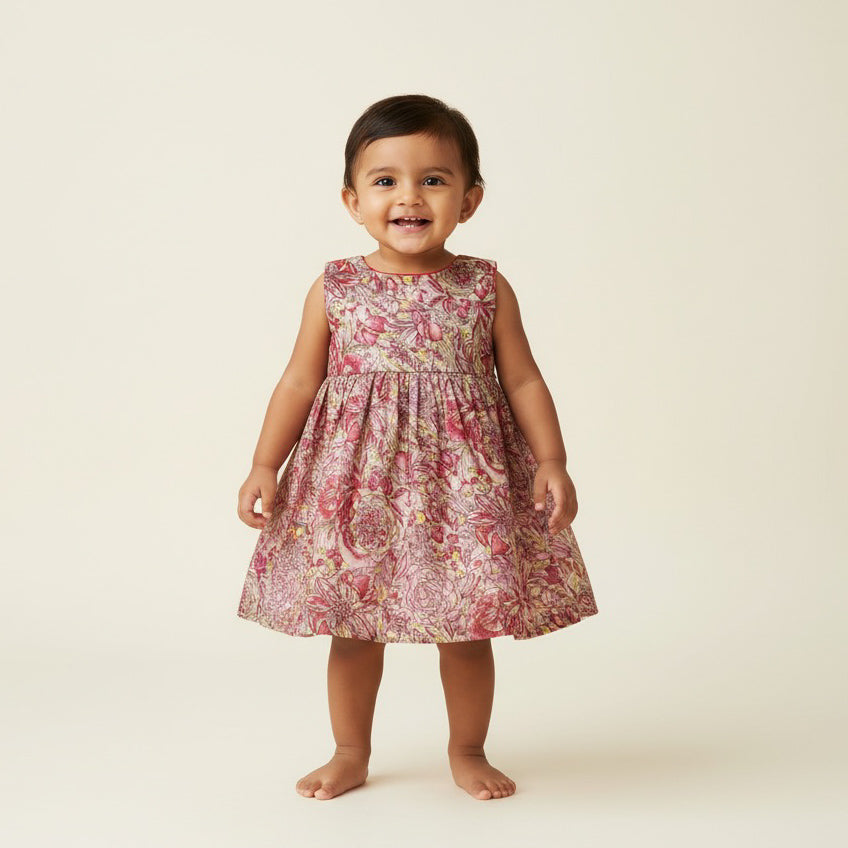 Shimmer Cotton Occasion Wear Dress - Light Pink Floral