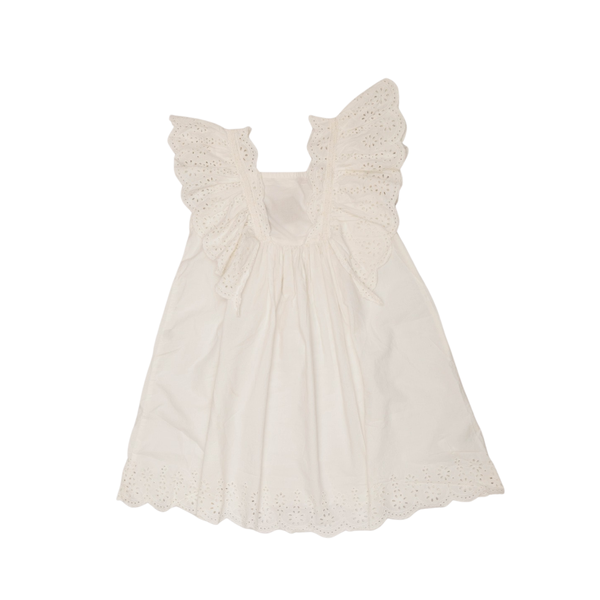 Baby Girl Cutwork Flutter Sleeve Dress - White