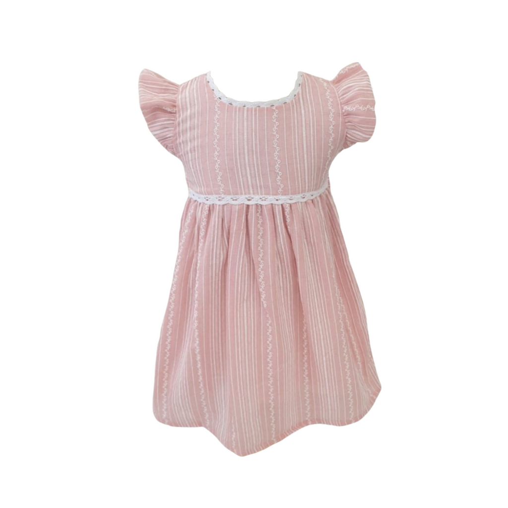 Baby Girl & Kids Flutter Sleeve Lace Detail Dress in Pink