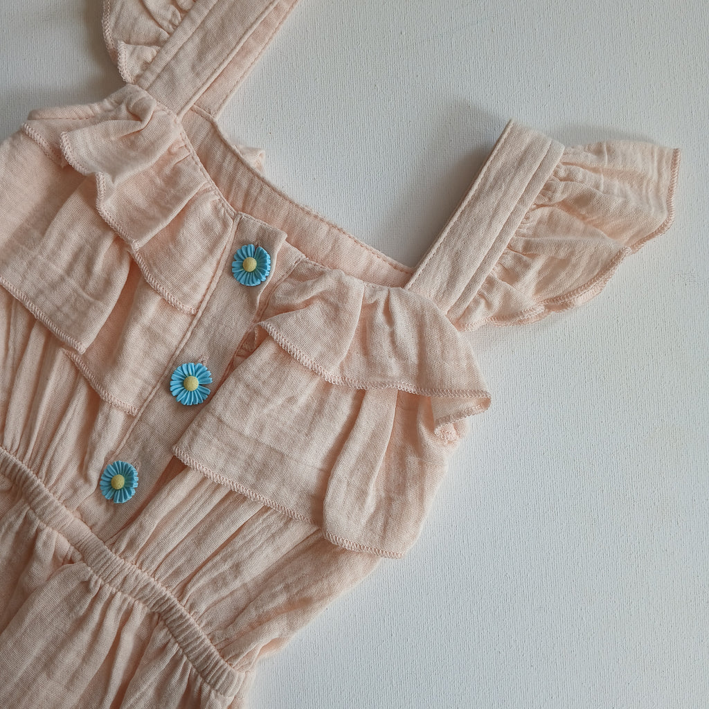 This jumpsuit is perfect for casual, summer wear with its gorgeous light pink design. Ideal for baby girls and kids, it offers a comfortable and stylish option for any warm weather occasion. Stay cool and fashionable with this must-have jumpsuit.