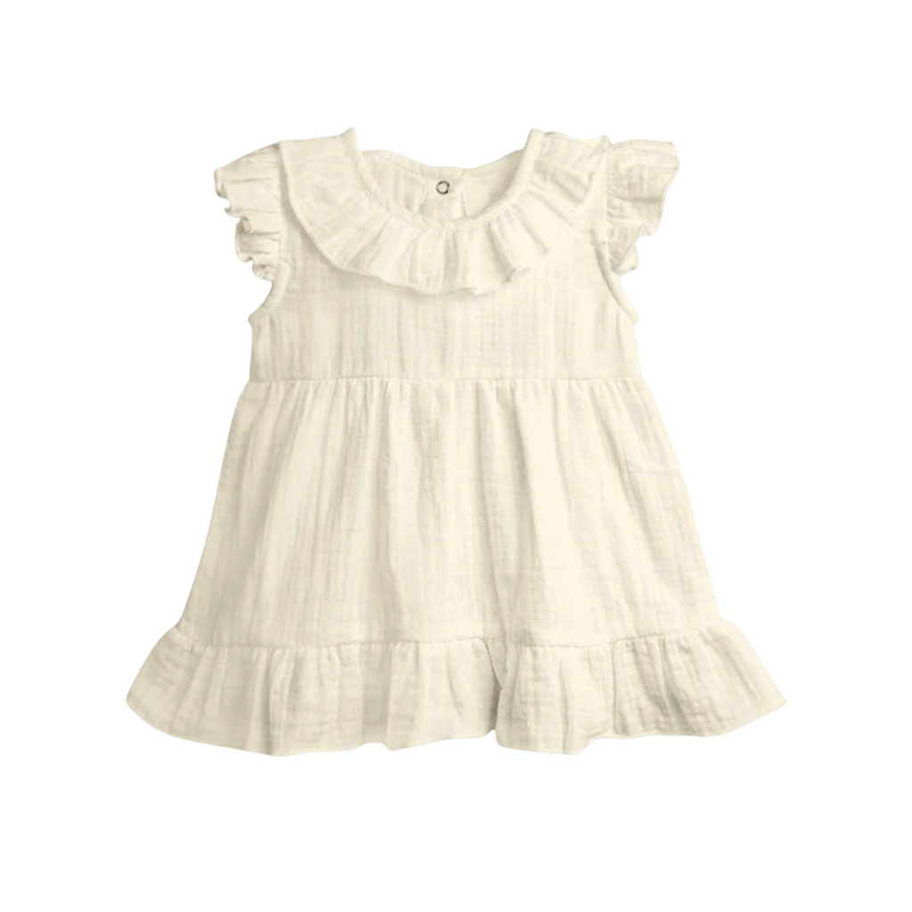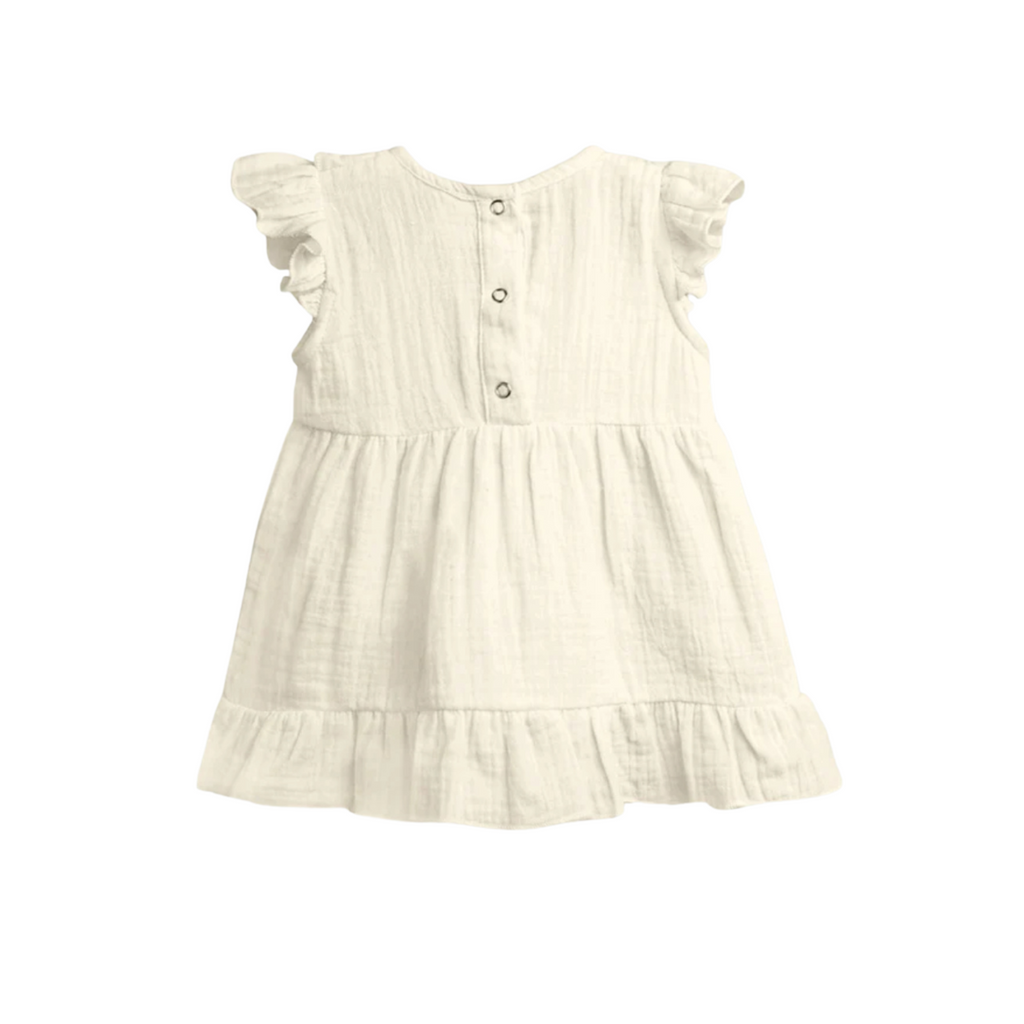 Girls Super Soft Muslin Flutter Sleeve Dress - Cream