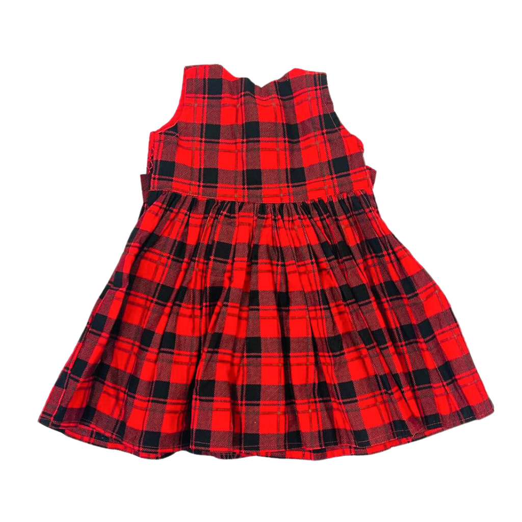 This girl's dress features a classic red plaid design, creating an eye-catching look that is sure to turn heads.