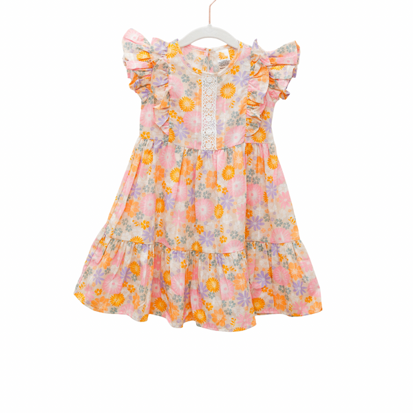 Baby Girl Cotton Orange & Yellow Floral Sun Dress