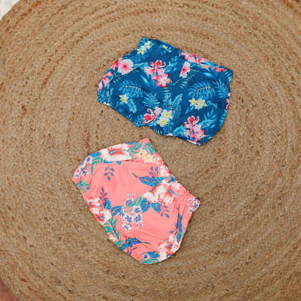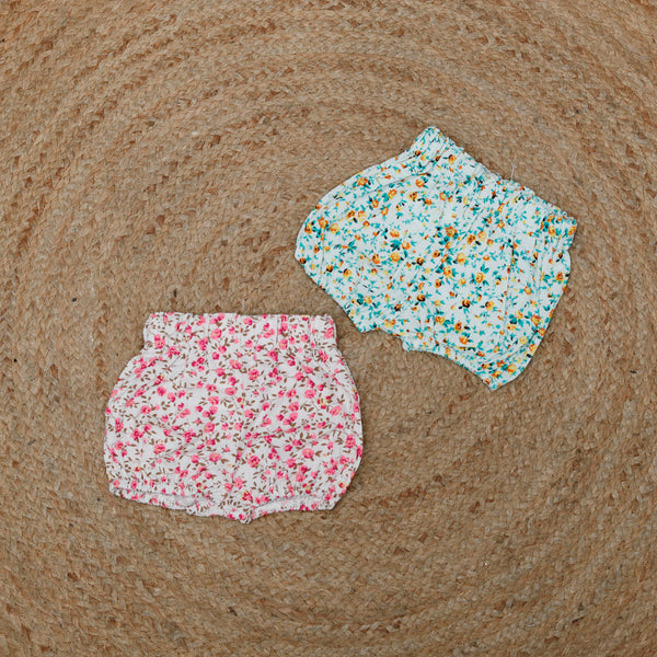 Baby Girl Cotton Bow Shorts - Floral Orange