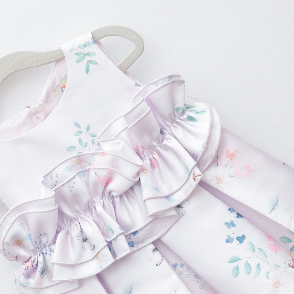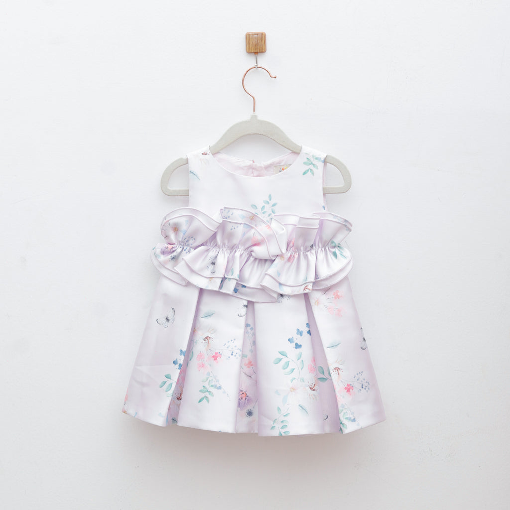 Infant Baby Girl Ruffle Floral Print Party Dress - Pale Purple