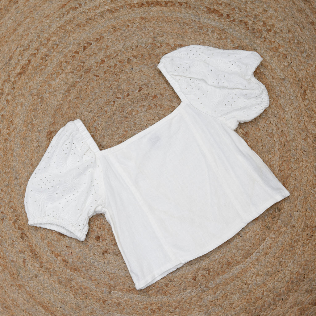 Girls Pineapple Cutlon Puff Sleeve Smocked Back Crop Top - Cream