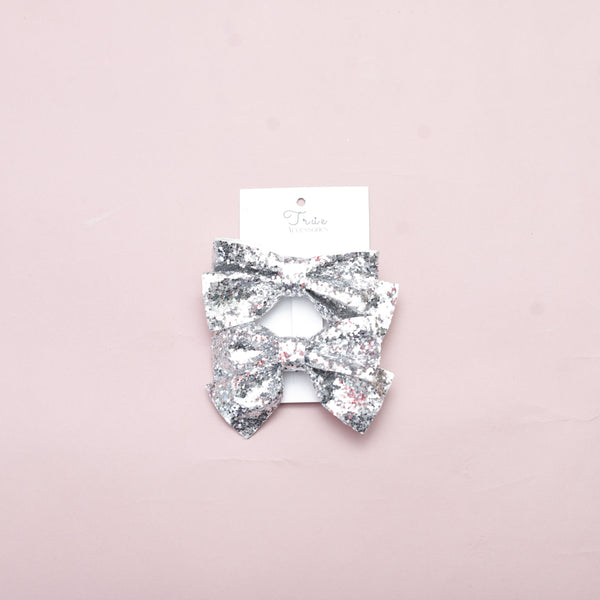 Sparkling Silver Glitter Hair Bow Set (2-Pack)