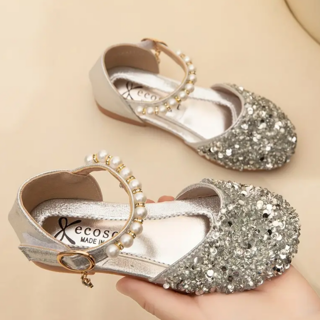 Sparkly Party Shoes with Pearl Detail - Silver