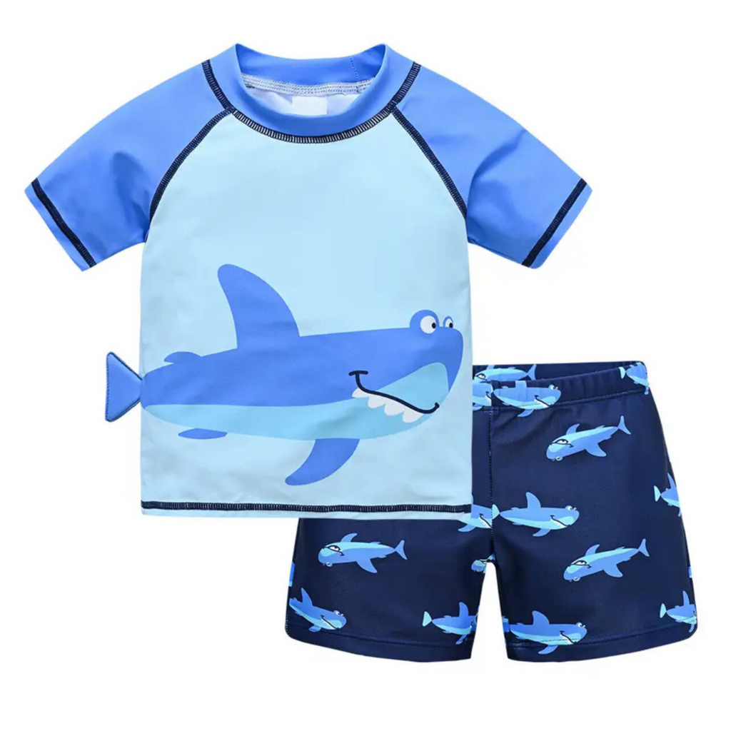 2 Pack Blue Shark Short Sleeve Swim + Shorts for Boys