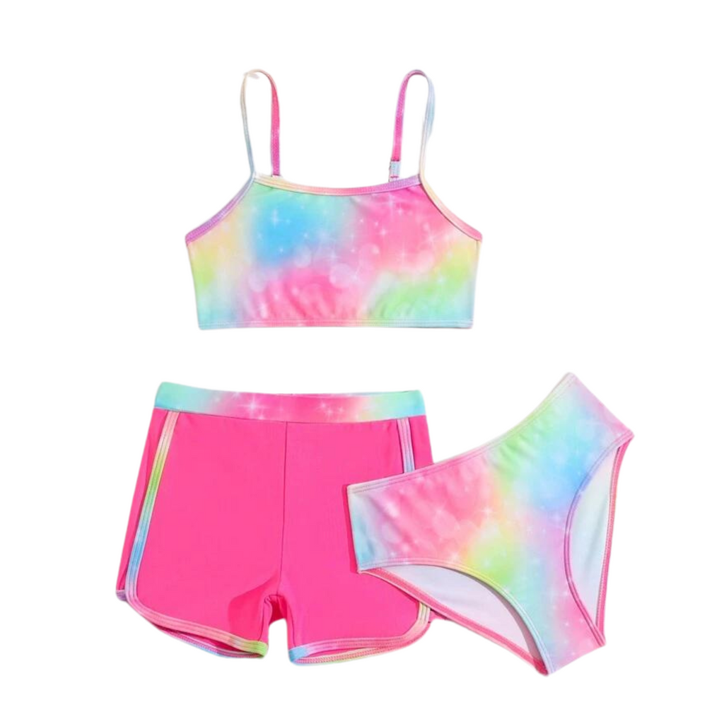 3 Pack Hot Pink Ombré Pink Bikini & Swim Shorts for Girls