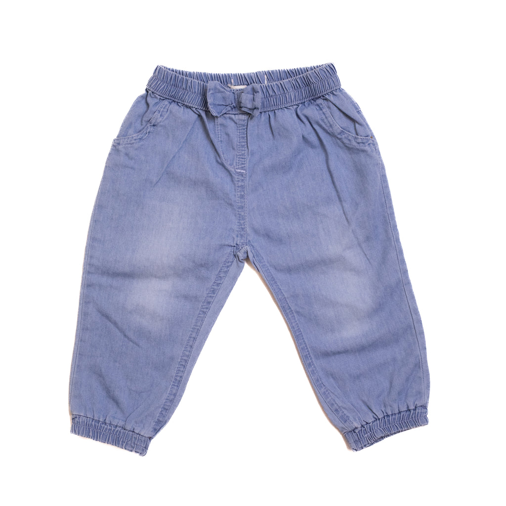 Crafted from gentle denim, these Baby Denim Bow Front Jeans offer both comfort and adorable style for your little one's collection. The snug waistband ensures a perfect fit while the soft fabric keeps your infant happy throughout the day. These charming blue jeans add a touch of fashion to any outfit. For longevity, simply machine wash cold (maximum 30℃) with similar colors on a delicate cycle.