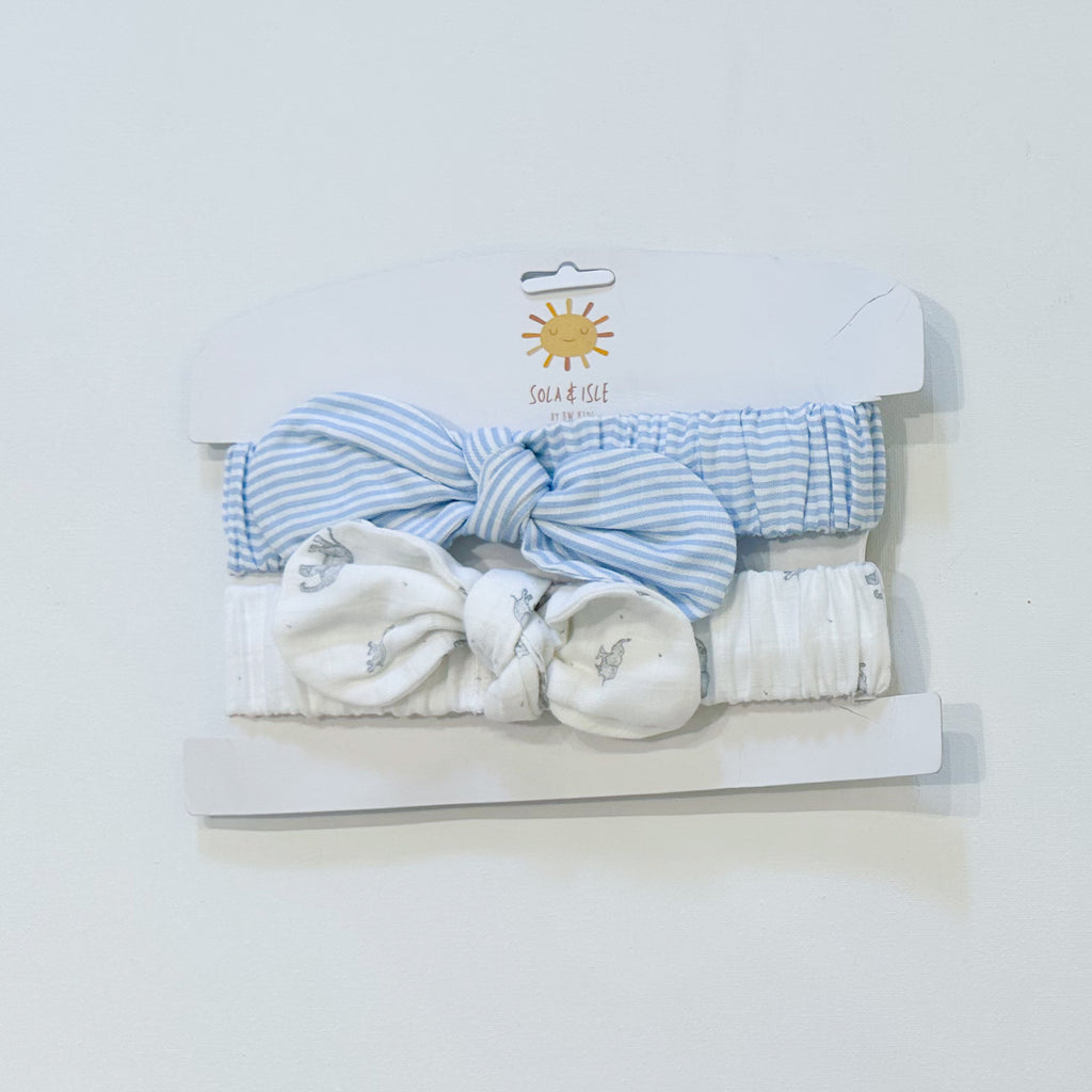 Bow Head Bands - 2 Pack - Blue Stripe & White Grey Elephant