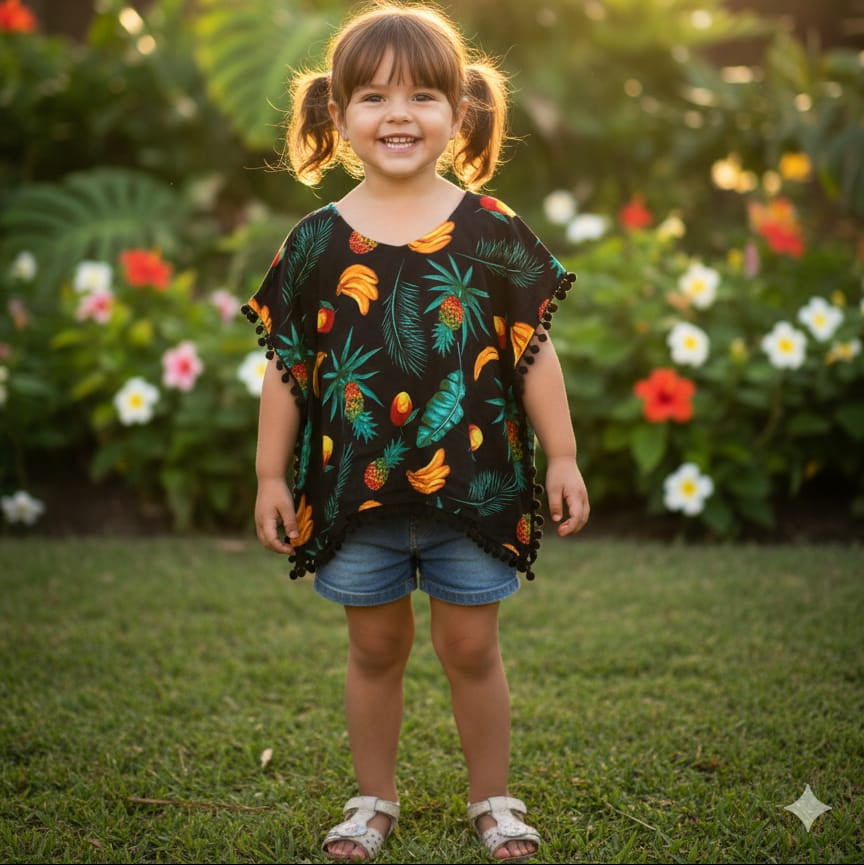 This Butterfly Kimono features a playful fruit print, perfect for adding a touch of whimsy to your wardrobe. Made from lightweight fabric, it's great for layering and versatile for any occasion. The airy feel and vibrant design make it a must-have for any fashion lover.