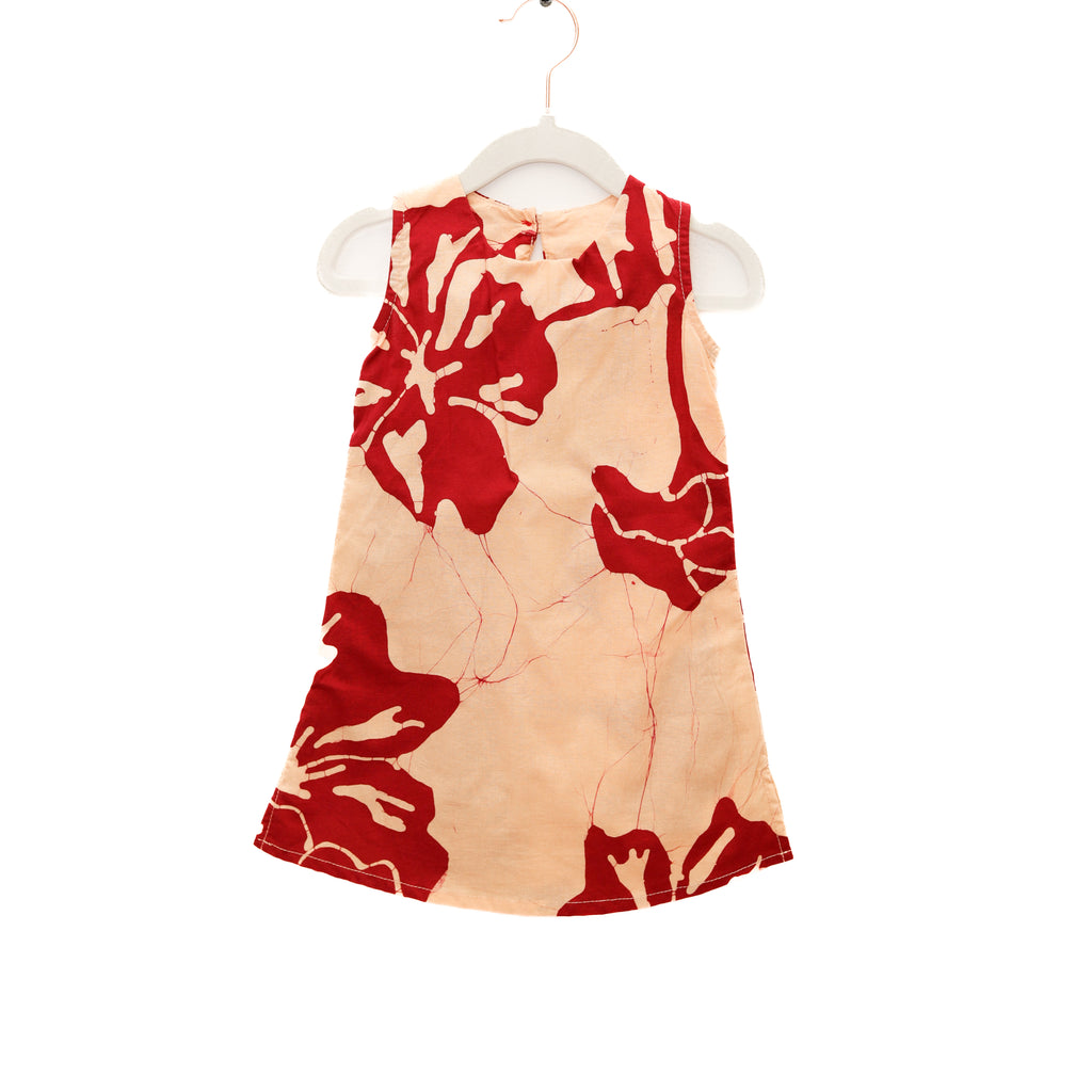 Girls Batik Sleeveless Dress - Cream & Red Floral