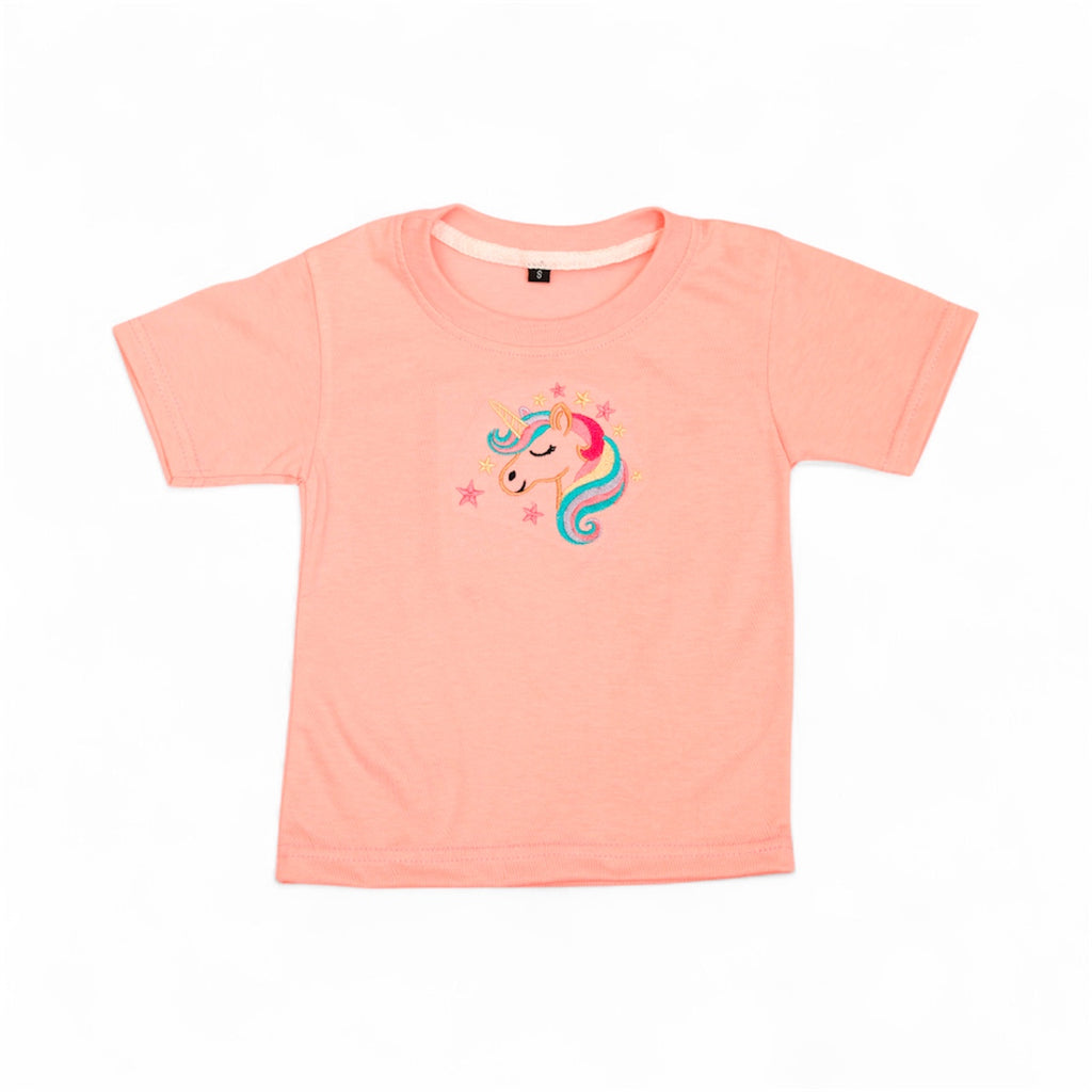 Girls Cotton T-Shirt with Unicorn Embroidery - Pink