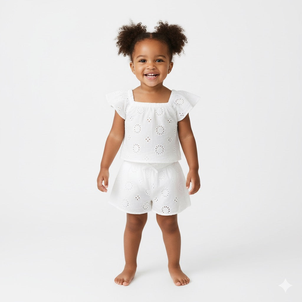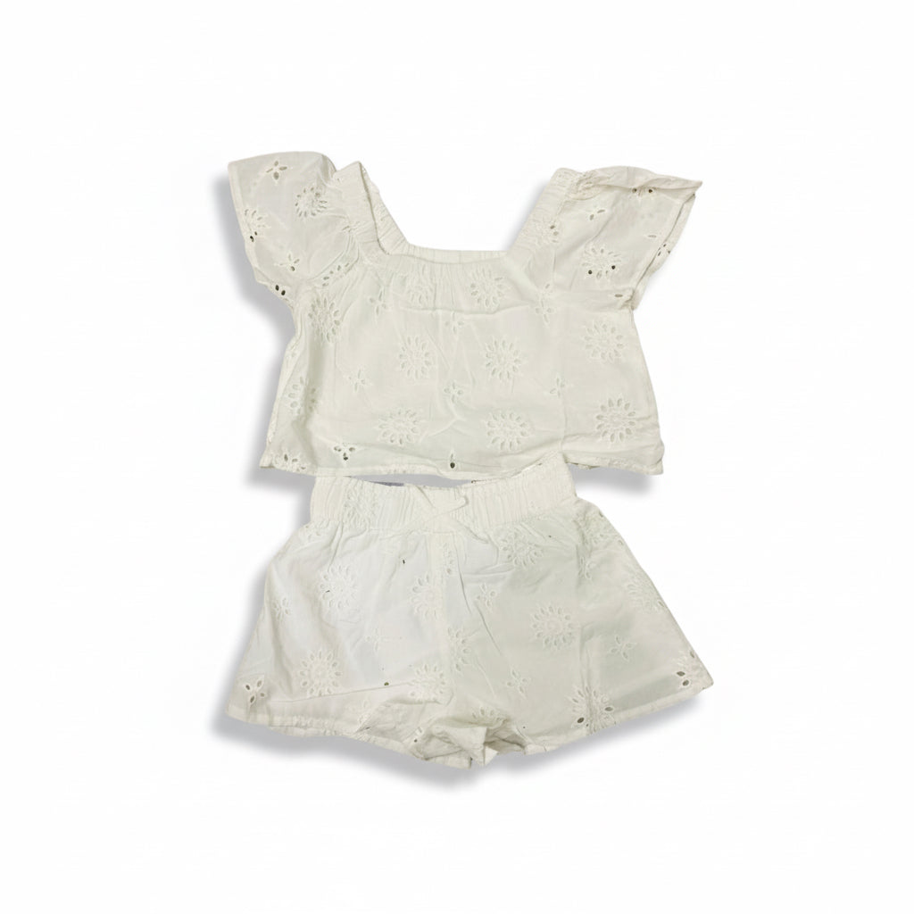 Girls Openwork Organic Cotton Coord Shirt & Short Set in White