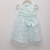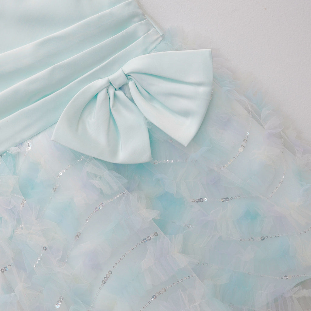 Girls Sleeveless Bow Layered Tulle Party Dress in Ombré Blue