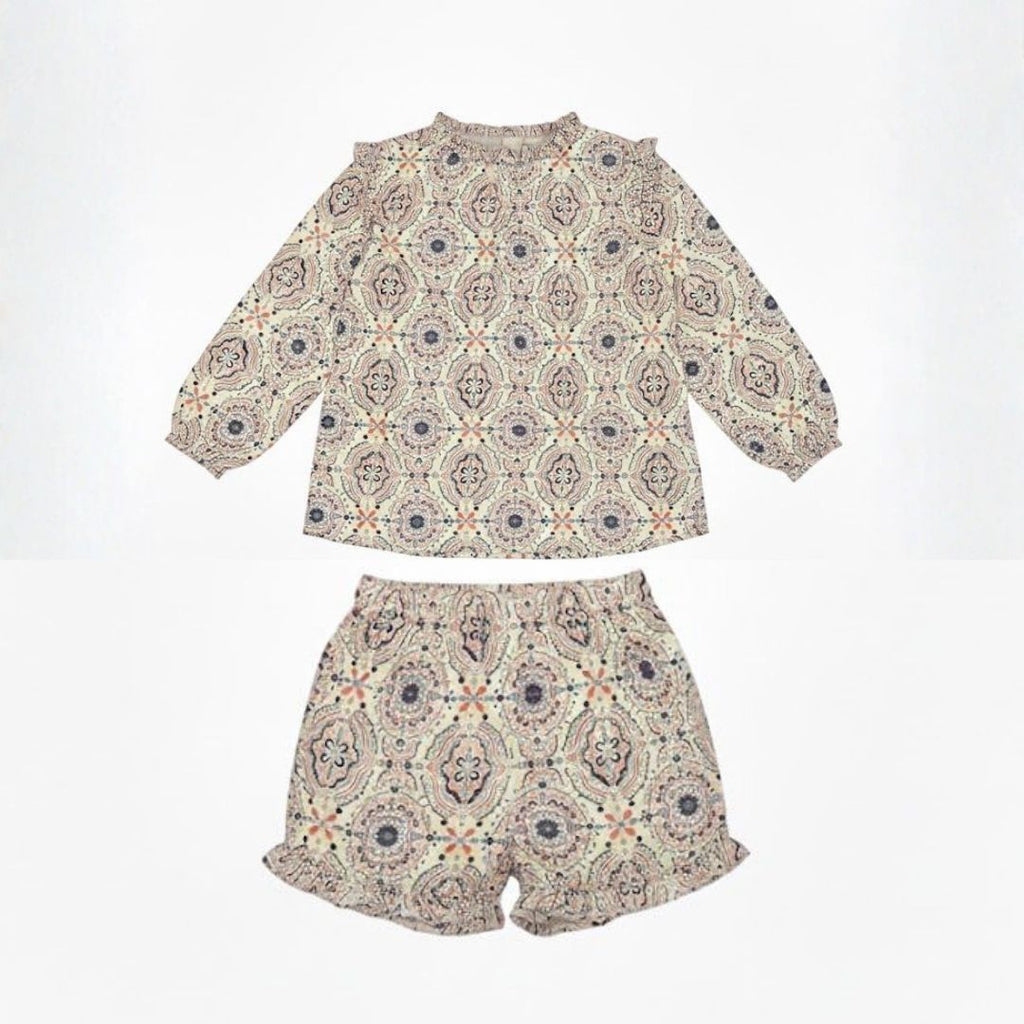 This infant baby girl co-ord set features a beautiful top and skirt set.