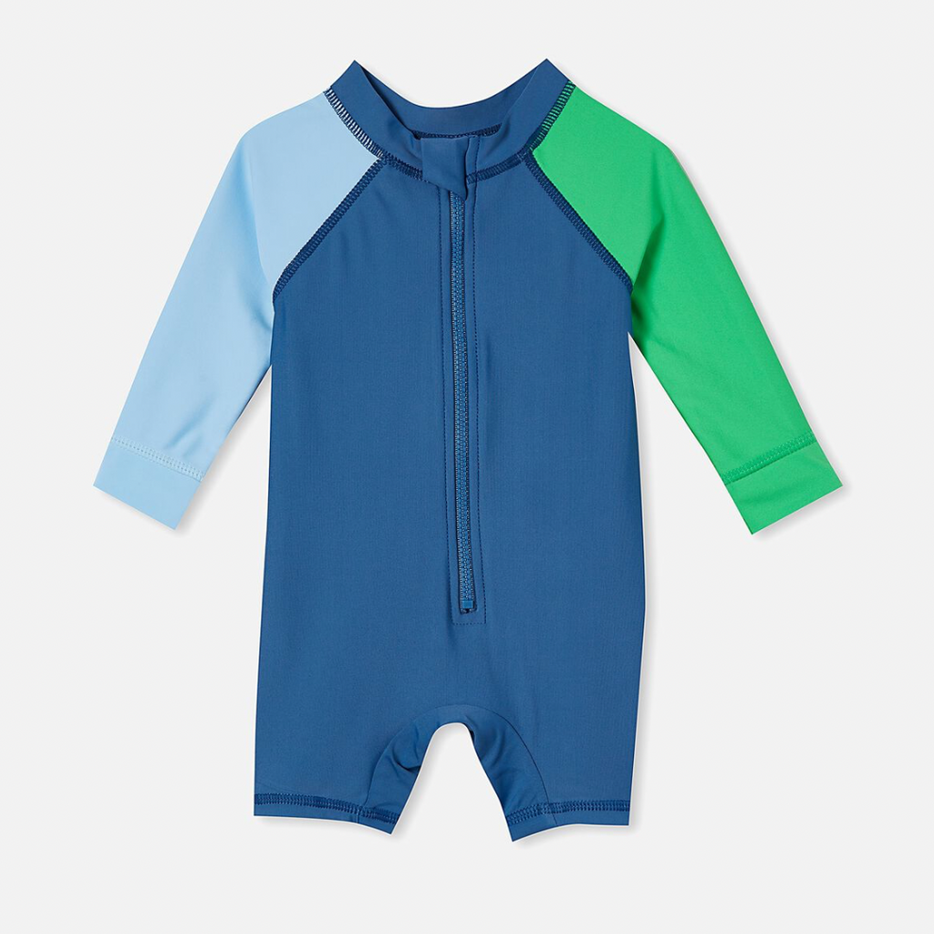 Long Sleeve Zipper Front Swimsuit for Infant Baby - Navy & Light Blue Options