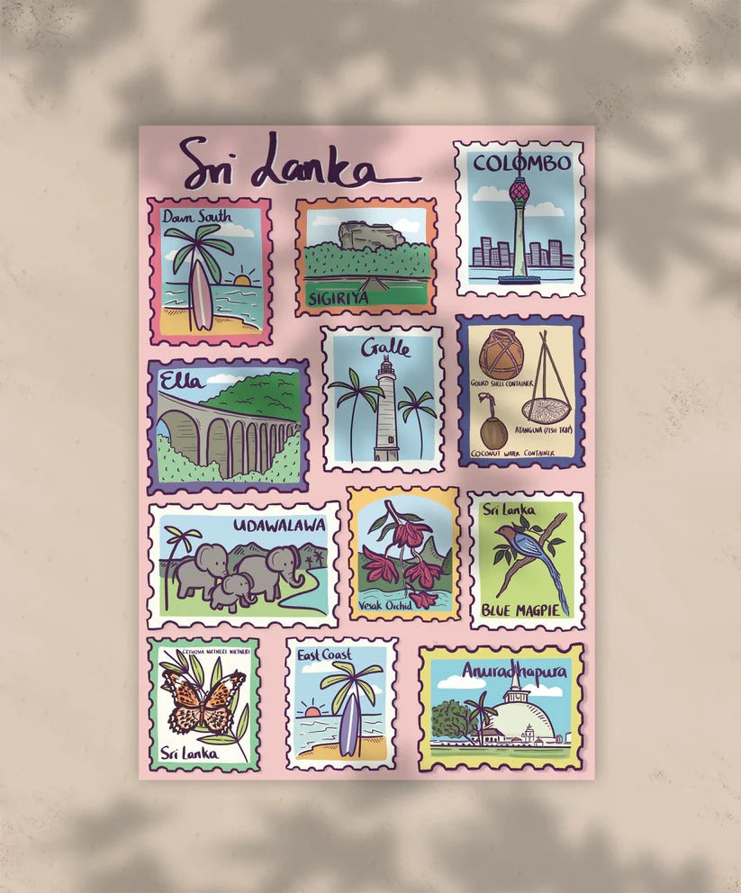 This blue postcard features a detailed map of Sri Lanka, making it a perfect keepsake or a unique way to share the island’s charm with friends and family.