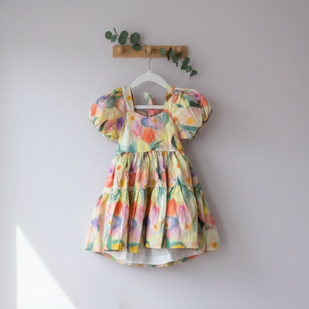 Elevate your everyday wardrobe with this vibrant puff sleeve cotton dress. Crafted from breathable cotton fabric, it offers comfort and durability for all-day wear. The distinctive puff sleeves add a touch of contemporary elegance, while the colorful design makes a bold statement. Perfect for casual outings, weekend gatherings, or layered styling, this versatile piece transitions seamlessly from season to season. A wardrobe essential that combines style with practical comfort.