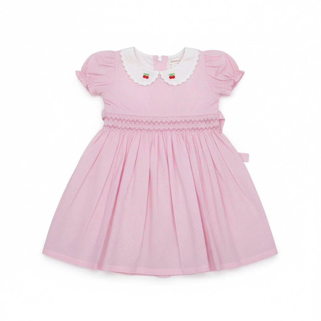 Girls Pink Pan Collared & Embroidered Smocked Dress