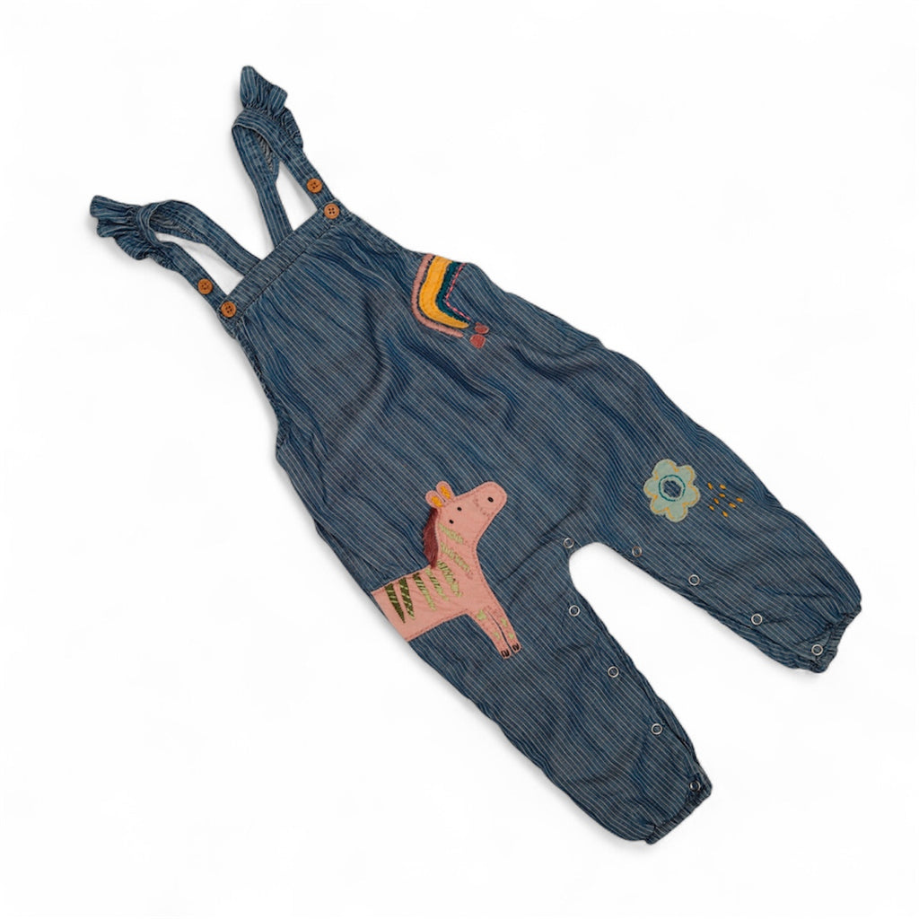 Get your little one ready for a day of comfortable play with these adorable and practical Kids Denim Appliqué Dungarees. Crafted from a soft, lightweight chambray denim, these overalls provide the classic denim look while ensuring maximum comfort and mobility for your infant or toddler. The playful design is highlighted by a fun pink zebra appliqué (or other cute animal graphic) stitched right onto the bib pocket, adding a charming, colorful detail. Featuring essential practicality with adjustable shoulder straps and convenient snap closures, these durable denim dungarees are a cozy, fuss-free favorite for any young explorer's wardrobe.