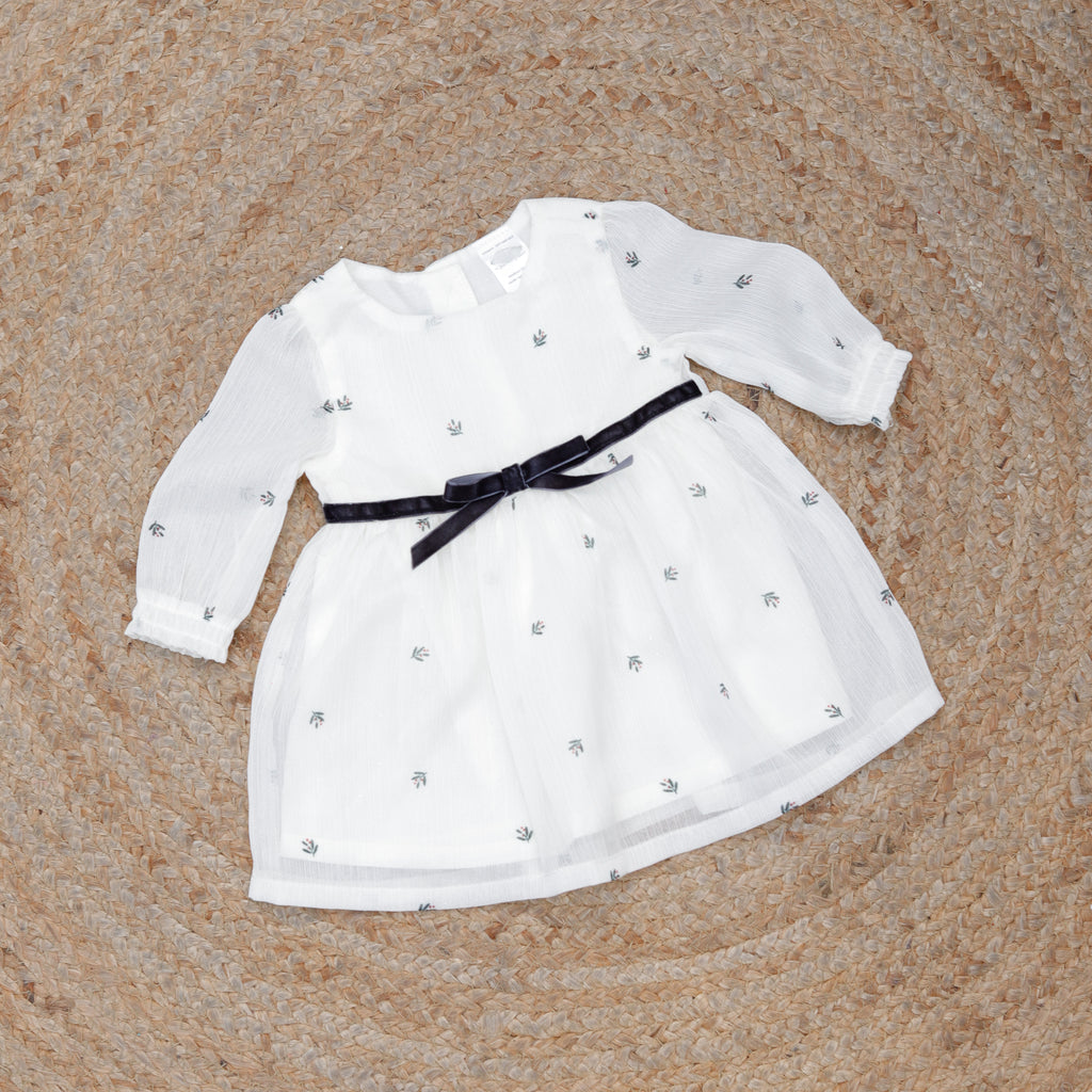 This Baby Girl Party Dress combines delicate embroider patterns with a charming lace detail, making it perfect for special occasions.